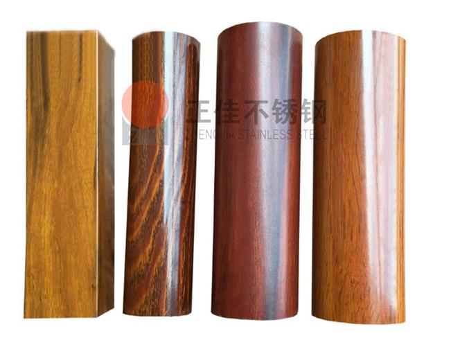 生產方法,效率高,成本低,可批量生產。水轉印是以前木紋轉印的代表,后來熱轉印的發展,已經成功替代水轉印。熱轉印可以更好的呈現出各種不同的木紋效果,而且比水轉印的污染少,效率高。熱轉印是通過轉印紙通過高溫,把轉印紙上的木紋轉印到不銹鋼裝飾管上。是現階段木紋不銹鋼管廠家最常用的木紋不銹鋼管生產方法。